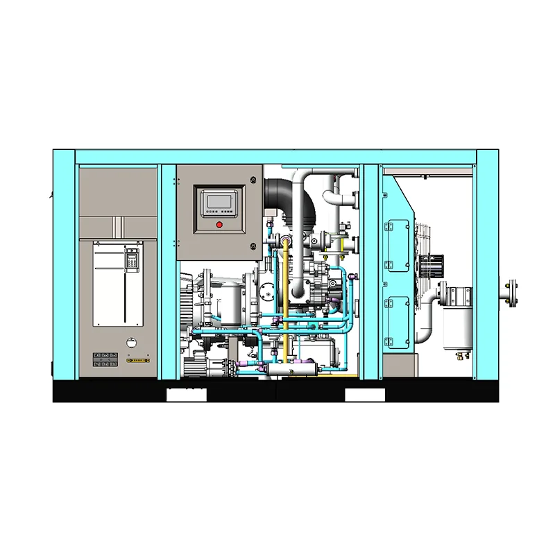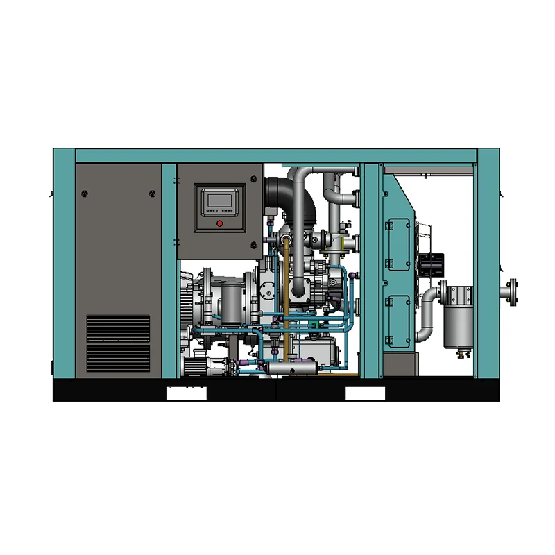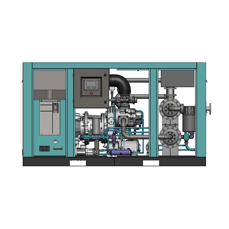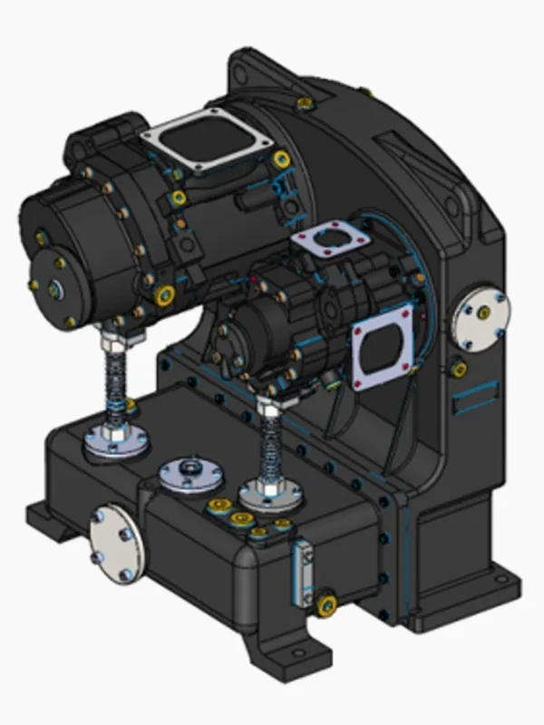 Das Übersetzungsverhältnis des Niederdruckverdichterkopfes beträgt 3 Zähne für den Antriebsrotor und 4 Zähne für den Abtriebsrotor; Der Kopf des Hochdruckkompressors verfügt über 4 Zähne für den Antriebsrotor und 6 Zähne für den Abtriebsrotor. Die Rotoren werden alle einer speziellen Oberflächenbehandlung unterzogen. Insbesondere in der Hochdruckstufe werden Edelstahlrotoren verwendet, die langlebig sind – hohen Temperaturen und Drücken standhalten – und über eine einzigartige Struktur verfügen, die eine einfache Anpassung an unterschiedliche Spezifikationen sowie eine einfache Bedienung und Wartung ermöglicht. Das einzigartige Wellendichtungsdesign sorgt für absolut ölfreie Druckluft.